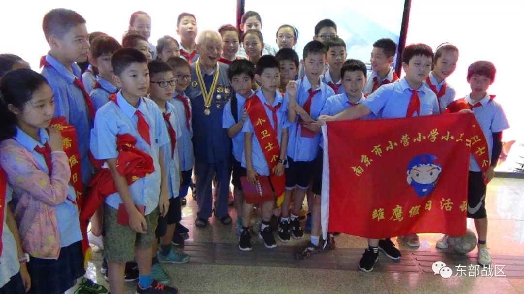 小营小学学生与新四军老战士李剑锋老首长合影。练红宁摄影