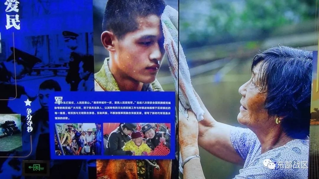 “爱我国防爱我军”国防教育主题车站展览由“伟大军队·光辉历程”、“强大国防·奋进金陵”、“牢记使命·强国强军”三个部分组成。“伟大军队·光辉历程”内容有人民之师、威武之师、和平之师、文明之师、胜战之师;“强大国防·奋进金陵”包括历史壮歌、盛世警钟、国防记忆、双拥交响、金陵名片;“牢记使命·强国强军”分为崇尚英雄、持枪列阵、勇士风采、铁甲英姿、国防情怀等。其中《2017南京籍官兵立功光荣榜》成为亮点之一,不仅有包括八一勋章1人、二等功7人、三等功200人共208名立功官兵的姓名,而且有南京溧水籍“王成式”的战斗英雄、八一勋章获得者韦昌进的多幅珍贵图片。