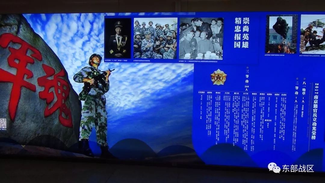 《爱我国防爱我军》国防教育主题长廊经典画面和南京籍官兵立功光荣榜。练红宁摄影