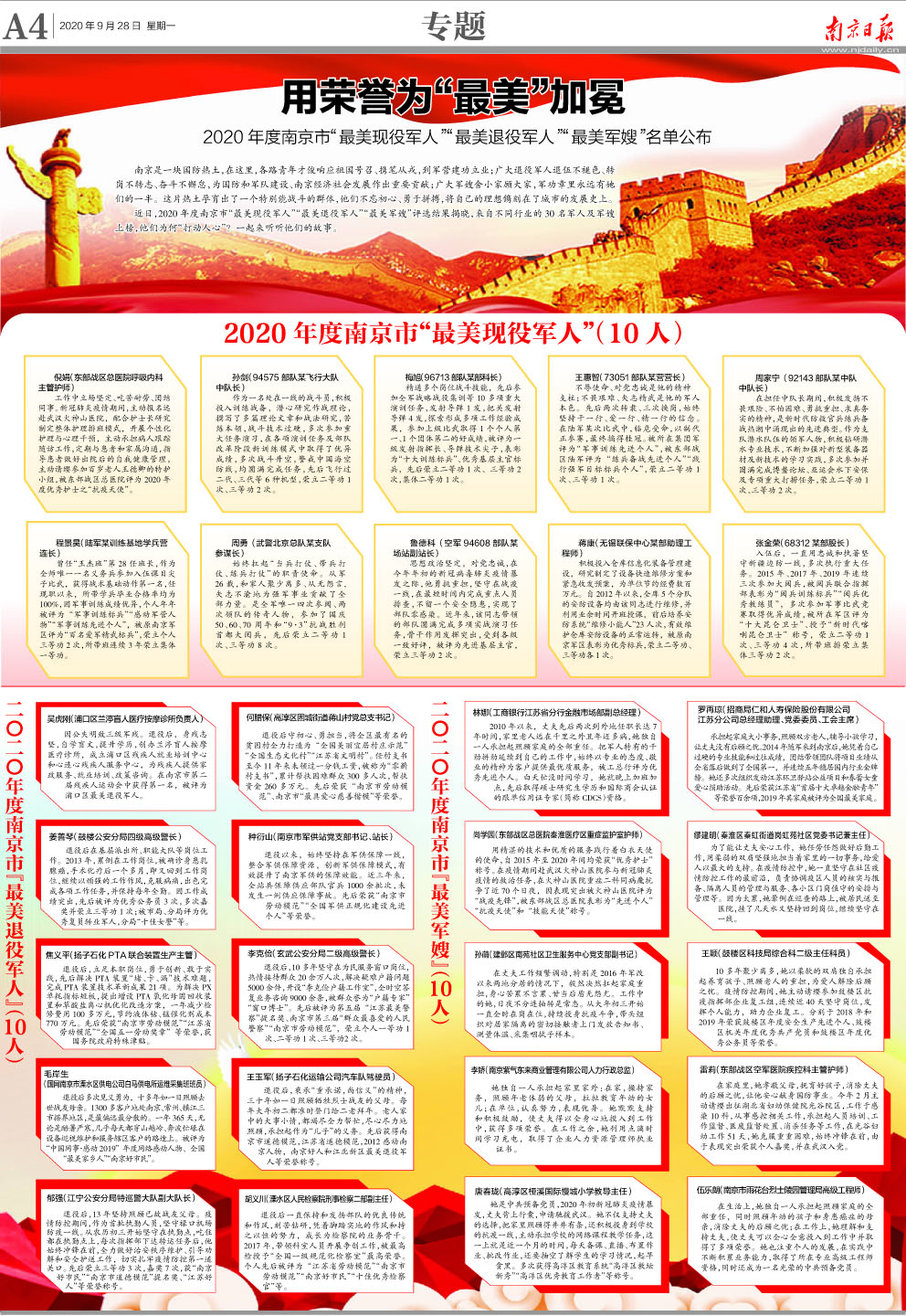 2020年度南京市“最美现役军人”“最美退役军人”“最美军嫂”名单公布