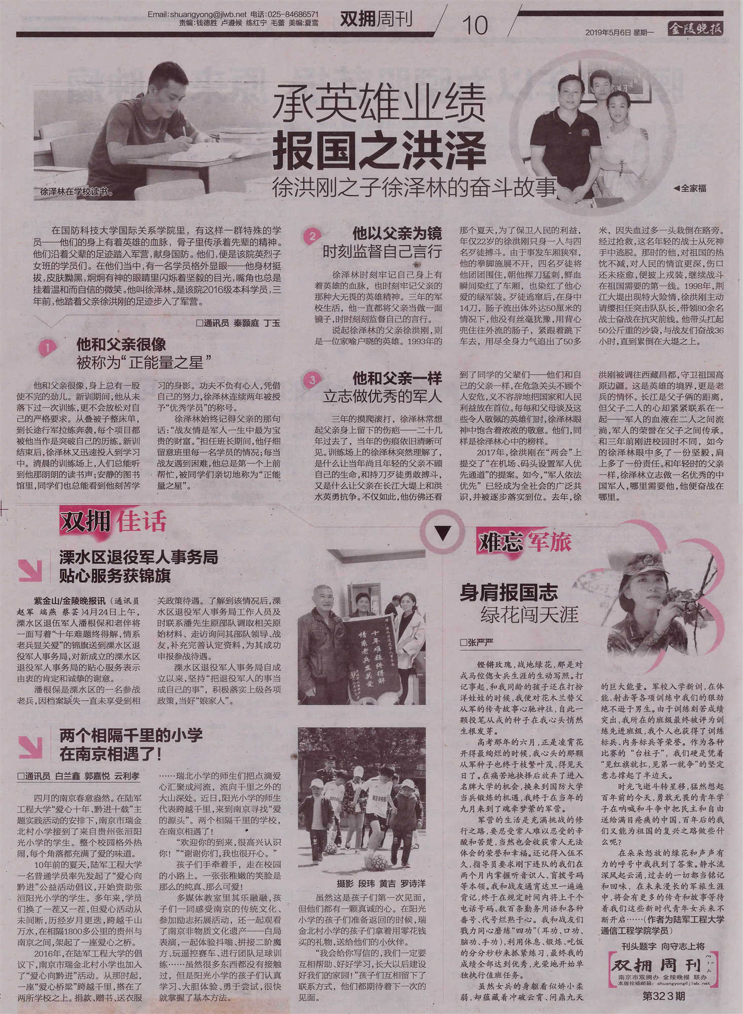 “我会给你写信的,我们一定要互相帮助、好好学习,长大以后建设好我们的家园!”孩子们互相留下了联系方式,他们都期待着下一次的见面。(原载《金陵晚报双拥周刊》2019年5月6日)