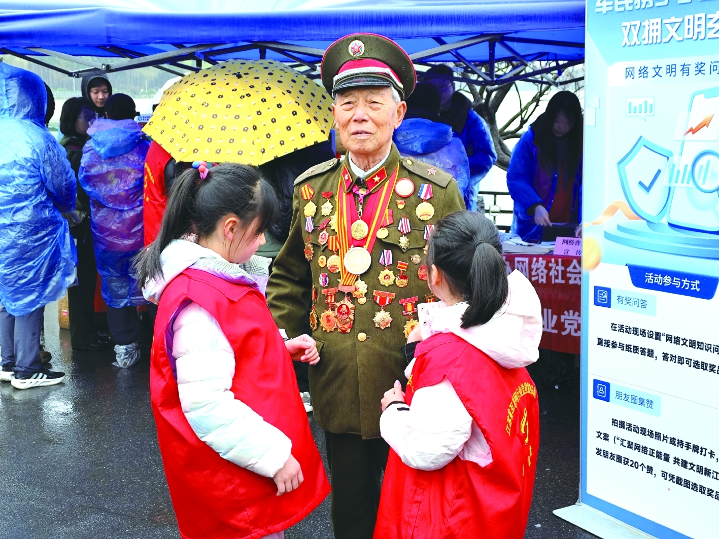 启动仪式在雨中举行。最动人的环节,要数雷锋战友赵明才的现场分享。91岁的赵明才身着旧式军装,胸前的军功章在雨幕中熠熠生辉,他用朴实的语言讲述与雷锋的并肩岁月,细数雷锋的感人事迹,字字句句饱含深情,让现场观众深受感动:雷锋不是“神”,是可学可做的普通人。雷锋精神就是一个大写的“爱”字!现场掌声雷动。雷锋传人结合自身经历,分享新时代传承雷锋精神的实践与思考,让大家明白雷锋精神从未远去,始终在身边、在日常。