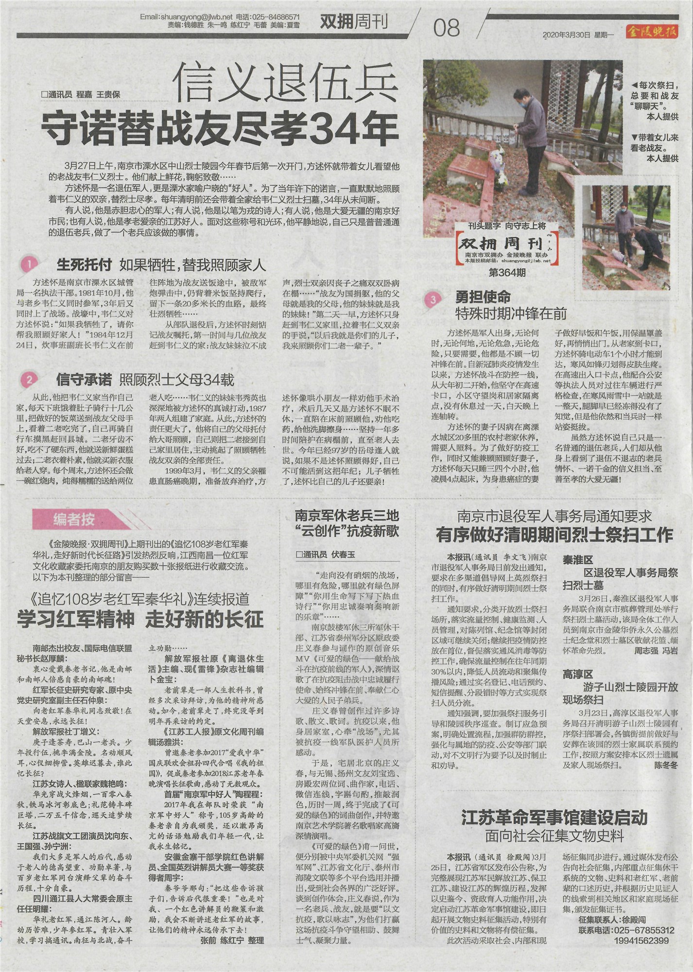 征集联系人:徐殿闯 联系电话:025-67855312 19941562399(原载《金陵晚报双拥周刊》2020年3月30日)